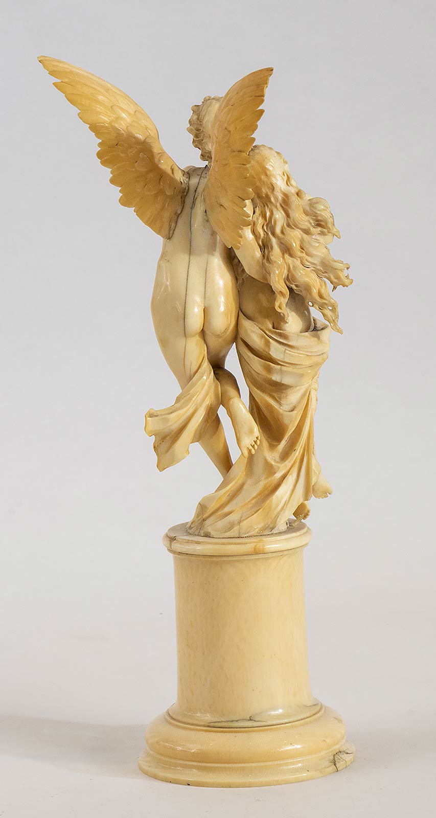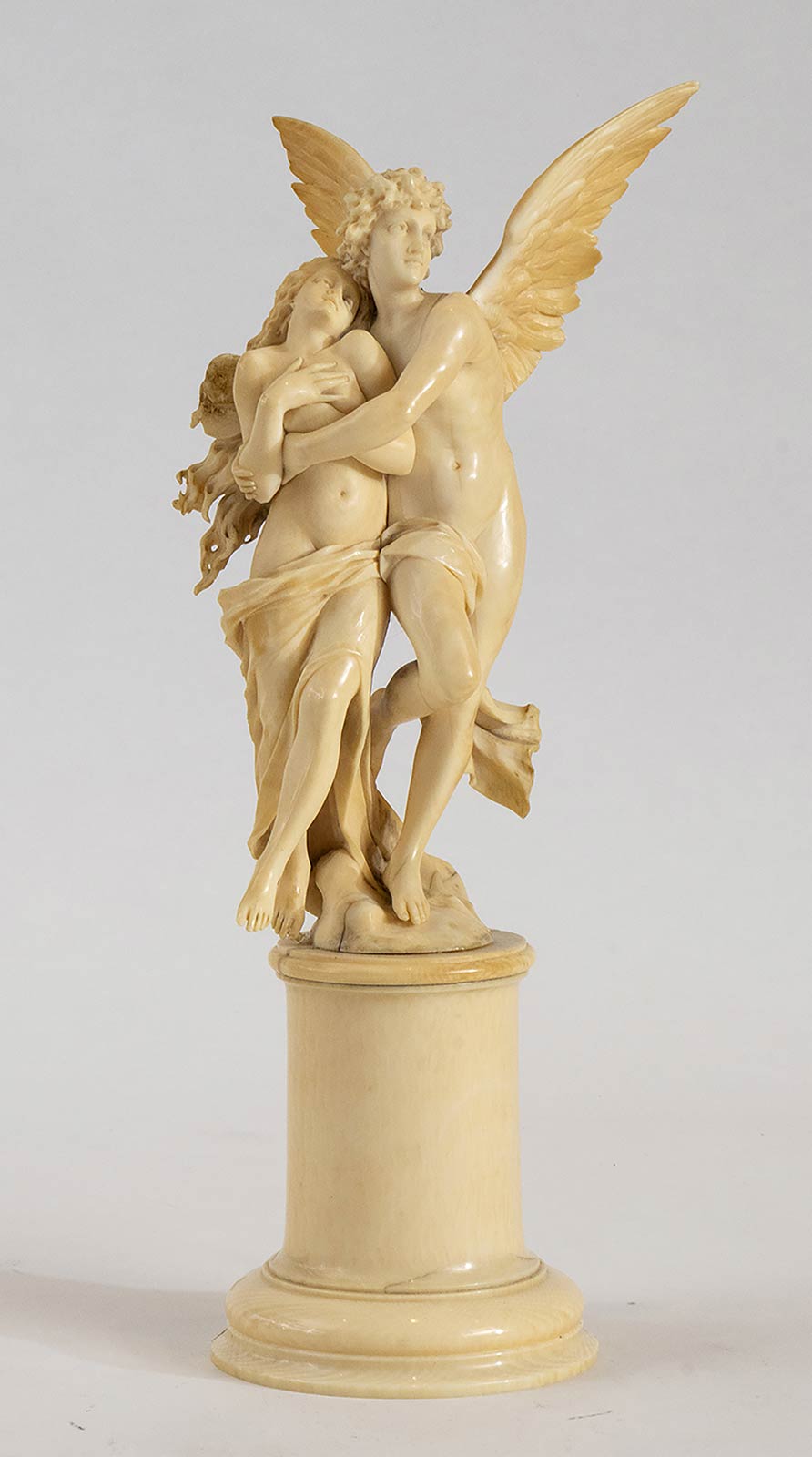 Gruppo scultoreo francese <br>in avorio raffigurante Amore e Psiche - XIX secolo<br>