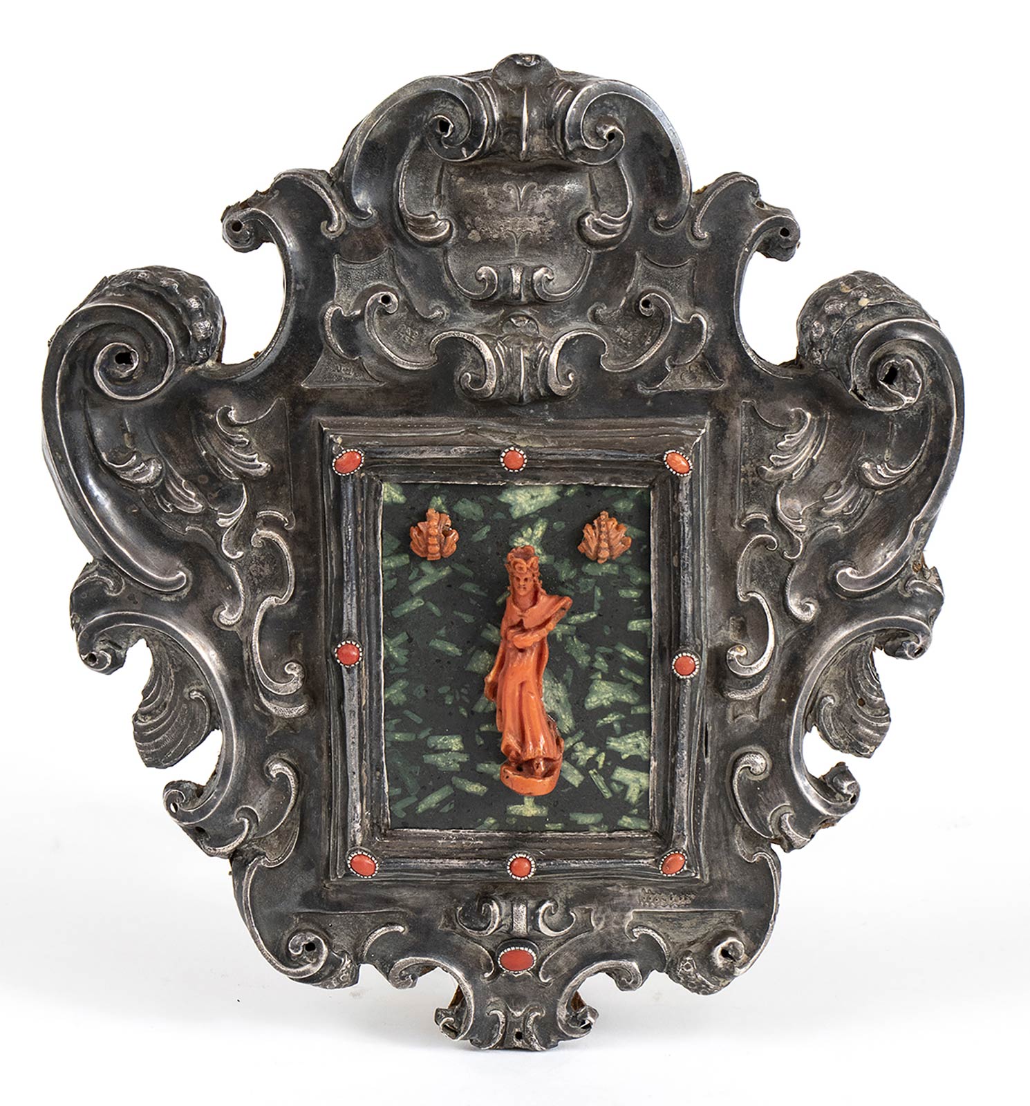Scultura italiana in corallo con cornice in argento - Napoli 1757