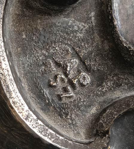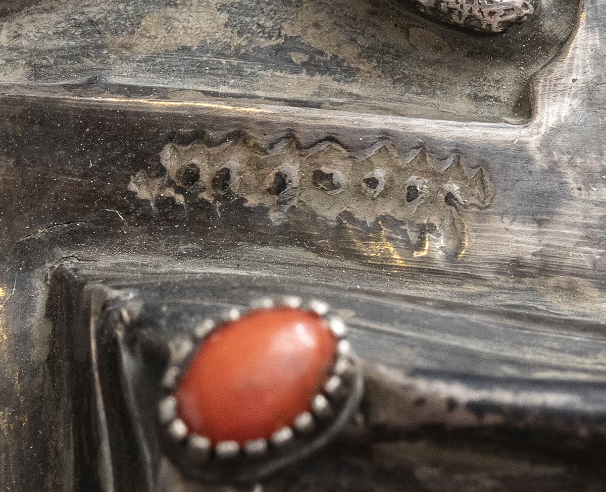 Scultura in corallo rosso mediterraneo (Corallum rubrum, Linneo 1758) con montatura barocca in argento punzonata con il marchio in uso alla corporazione degli Orefici di Napoli nel 1757, argentiere "F M". Dimensioni 22,5 x 20 cm. Peso complessivo 385 gr. Stato di conservazione: **** buono (difetti).