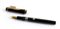 fusto e cappuccio in resina nera con finiture placcate in oro marcato "PELIKAN GERMANY" ed il pennino riporta la dicitura "PELIKAN M". Il sistema di caricamento è a stantuffo. Lunghezza 12 cm. Stato di conservazione: ****° nuova. Scatola Pelikan con inchiostro.
