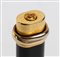 corpo e cappuccio neri con finiture placcate in oro; premendo la parte superiore del cappuccio la clip si apre alla larghezza desiderata, rilasciando la pressione la clip ritorna nella sua posizione originale. Numero di serie 538801. Lunghezza 13,7 cm. Stato di conservazione: **** buono. Scatola e controscatola Cartier originali. La penna potrebbe necessitare del cambio del refill.
