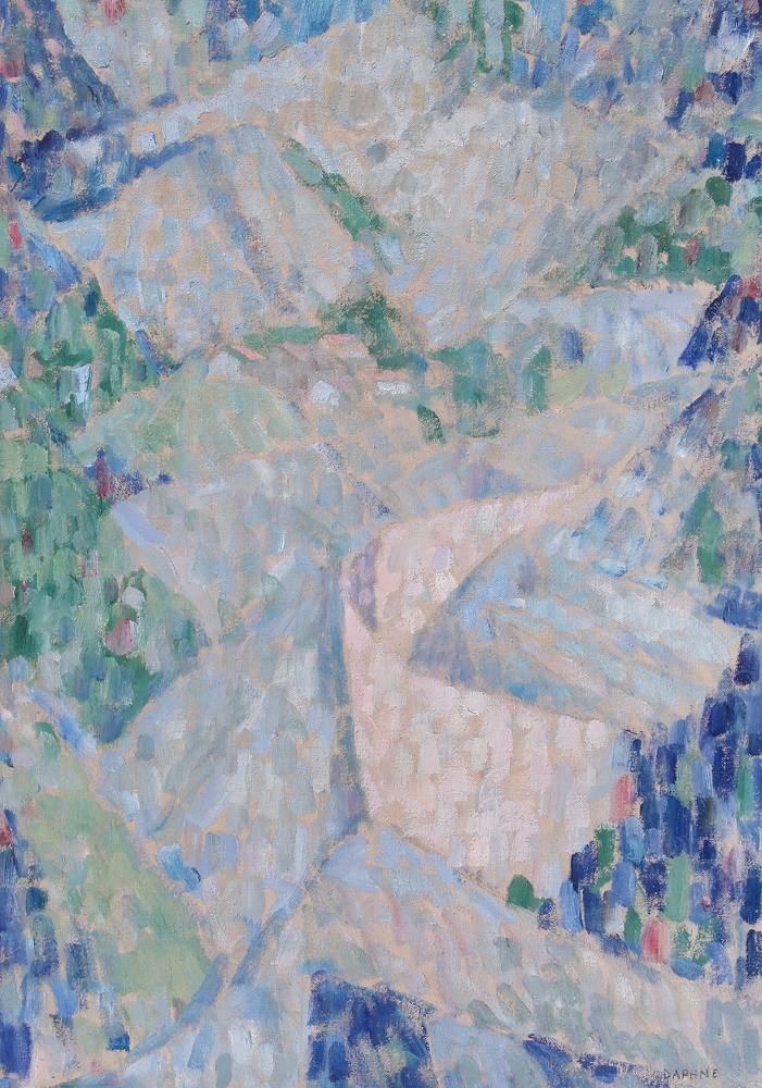 MAUGHAM DAPHNE CASORATI Londra 1897 - Torino 1982  Paesaggio, 1964 olio su tela cm. 83,5x58, firma in basso a destra, opera registrata preso l'Archivio Casorati come da dichiarazione su foto.