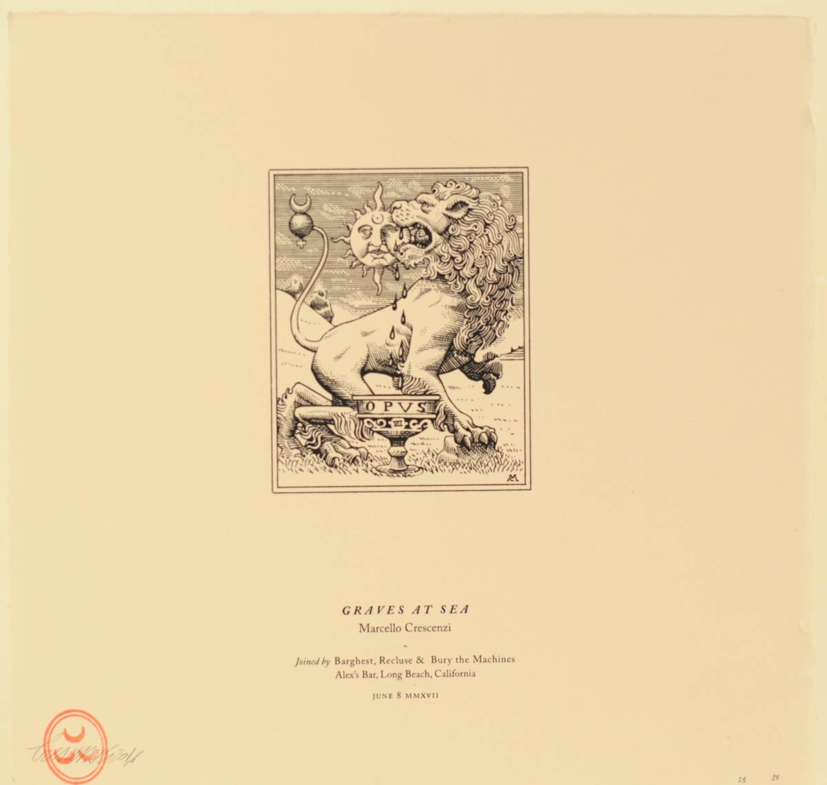 Edizione limitata (dieci esemplari) della locandina del concerto dei Graves at Sea all’Alex Bar di Long Beach