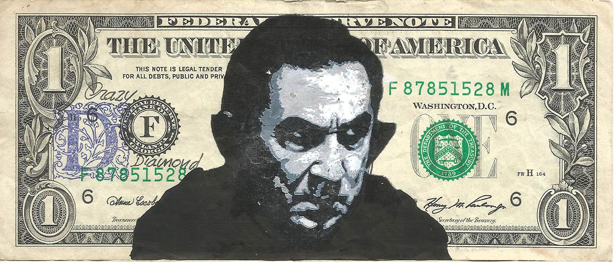 Mixed media on United States one-dollar bill