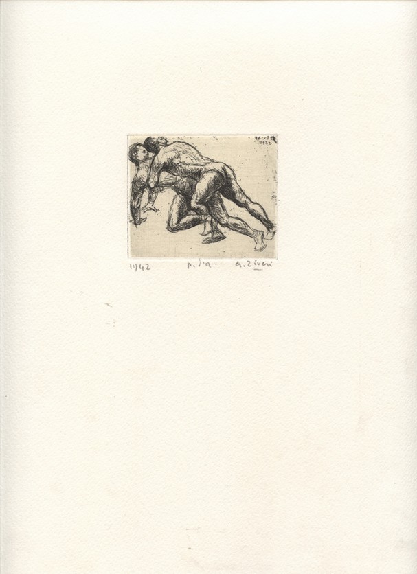 Firma e data in alto a destra sull'incisione: A. Ziveri, 1942; Firma, data ed esemplare in basso sul foglio: A. Ziveri, 1942, prova d'autore; "Ziveri. Le incisioni. Catalogo generale", a cura di Netta Vespignani, Roma, De Luca Editore, n° 194, p. 94