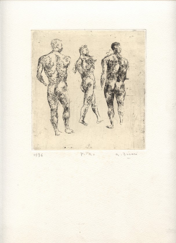 Firma, data ed esemplare in basso sul foglio: A. Ziveri, 1936, prova d'autore;"Ziveri. Le incisioni. Catalogo generale", a cura di Netta Vespignani, Roma, De Luca Editore, n° 41, p. 32