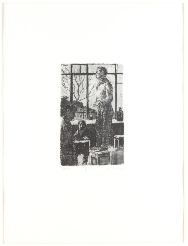 Firma, data ed esemplare in basso sul foglio: A. Ziveri, 1950, prova d'autore; "Ziveri. Le incisioni. Catalogo generale", a cura di Netta Vespignani, Roma, De Luca Editore, n° 508, p. 227