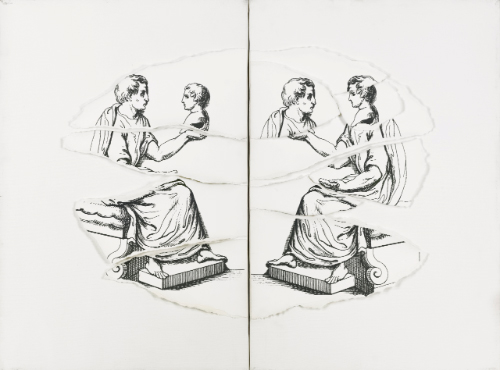 GIULIO PAOLINI 1940 SENZA TITOLO signed and dated 1977 on the reverse, collage on prepared canvas firmato e datato 1977 sul retro collage su tela preparata cm 60x80 (due elementi 60x40 cm ciascuno) PROVENANCE Studio Marconi, Milano Ivi acquisito dall'attuale proprietario nel 1979 EXHIBITED Milano, Galleria Pack, Protagonisti dell'Arte Italiana 1960-1970, 2001 LETTERATURA M. Disch, Giulio Paolini. Catalogo ragionato, Milano 2008, pag. 360, n. 349, illustrato