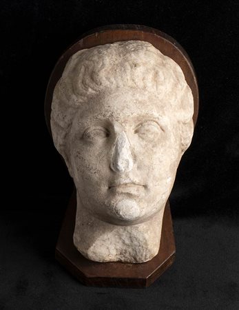 Roman Marble Head of a Woman, 1st century BC - 1st century AD; height (with wooden support) cm 16,8; height cm 21