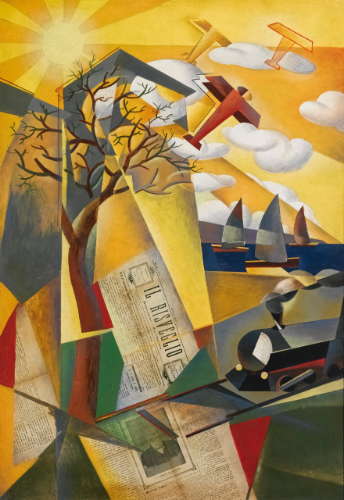 GIULIO D'ANNA 1908-1978 SENZA TITOLO signed D'Anna Futurista, oil and collage on canvas. Executed in 1928 firmato D'Anna Futurista olio e colleage su tela cm 89x130 Eseguito nel 1928 Opera registrata presso l'Archivio Storico dei Futuristi Siciliani, a cura della Diomedea Arte, Palermo L'opera è accompaganta da certificato su fotografia rilasciato dall'Archivio Storico dei Futuristi Sicilia, a cura della Diomedea Arte, Palermo PROVENANCE Diomedea Arte, Palermo