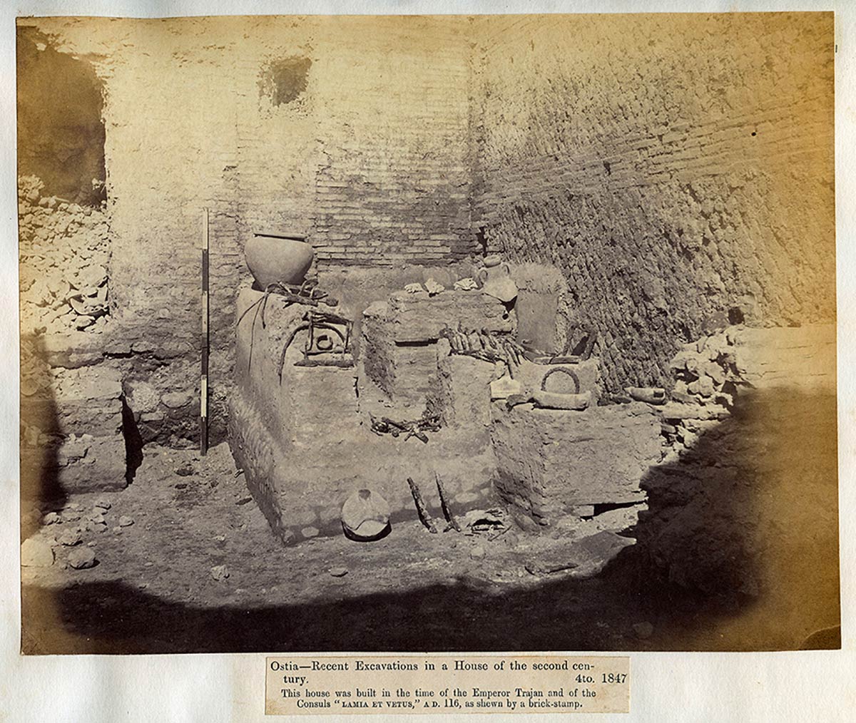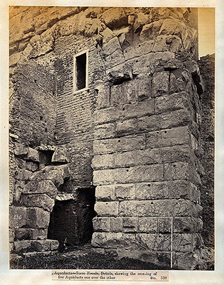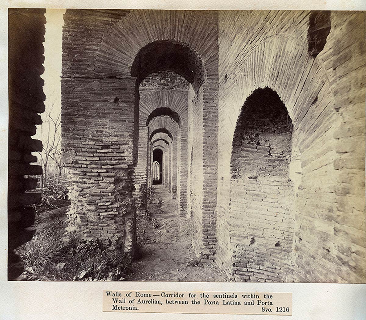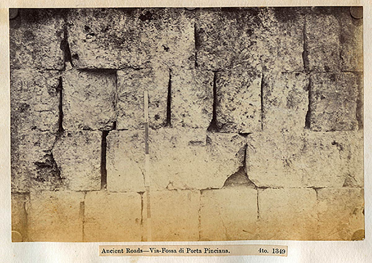 Collection of 43 photographs of Rome and its Antiquities taken and collected by John Henry Parker, 1865-1877; various sizes, pages cm 30,5 x 47; Photographs taken by John Parker and Charles Smeaton who experimented the use of artificial light sources (magnesium). Albumin and salt paper prints applied to light cardboard pages. In the photos some classical and early Christian monuments, architectural details, archaeological excavations and the very rare images taken inside the interior of crypts and catacombs. On the whole there are some prints made by the circle of Parker (Simelli, Lais, Colamedici) during the period of collaboration with Rodolfo Lanciani. The innovative insertion of metric references in the images is very interesting.