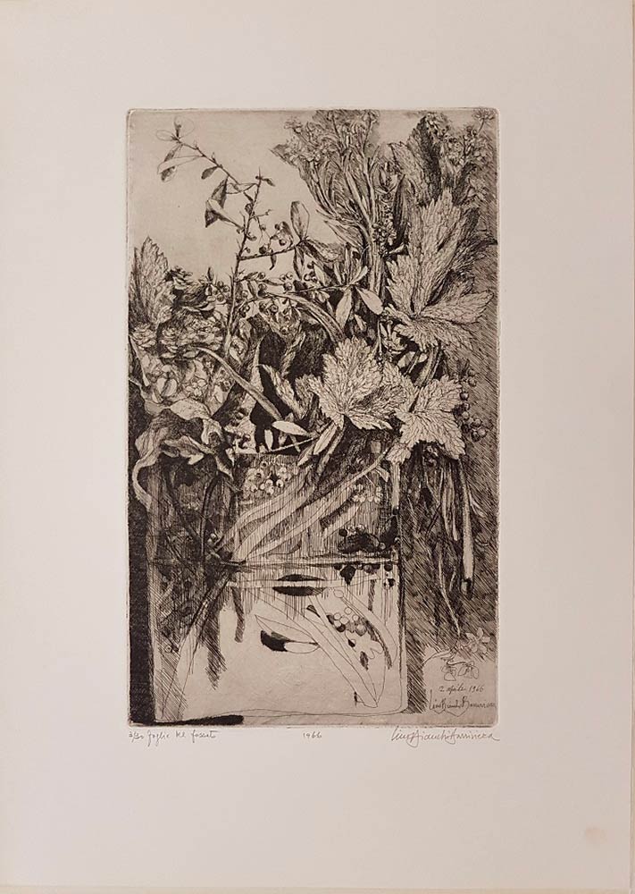 Foglie del Fossato è un'incisione originale su carta realizzata da Lino Bianchi Barriviera nel 1966.