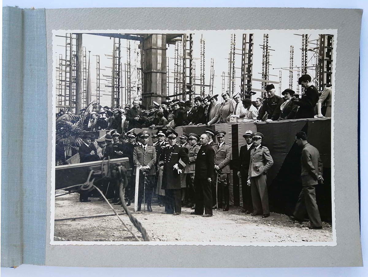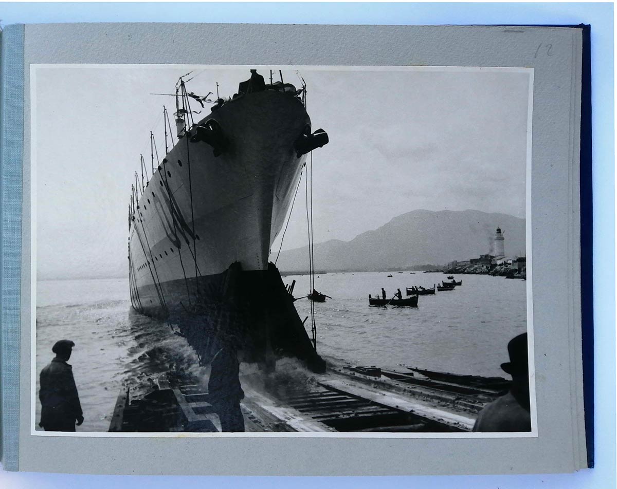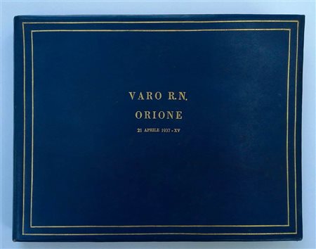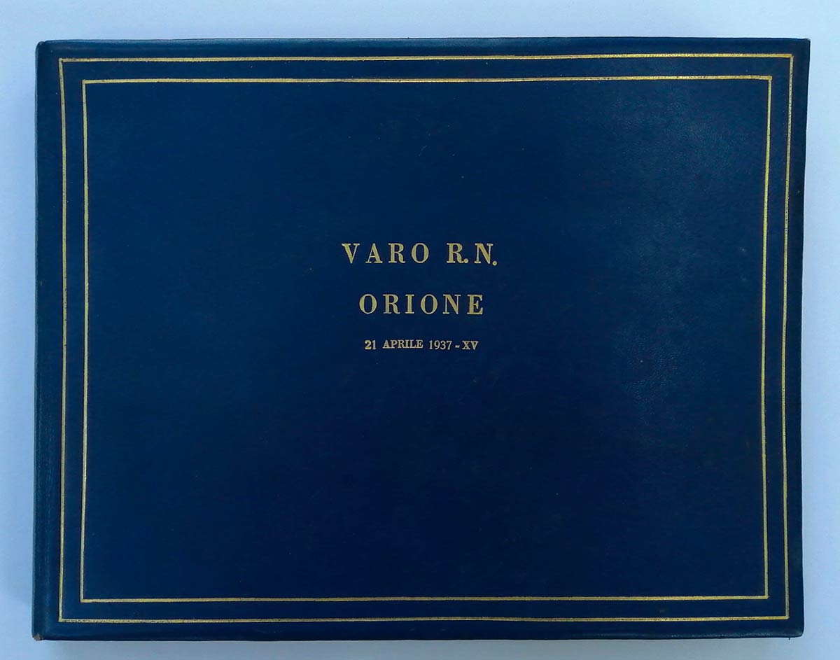 Album del varo torpediniera “Orione”, Palermo 1937. Album ufficiale del varo, copertina in similpelle blu con grafiche oro. Quindici Stampe professionali su carta baritata, numerosi personaggi celebri e magnifiche immagini della nave, 23 x 17,5 cm. Condizioni eccellenti