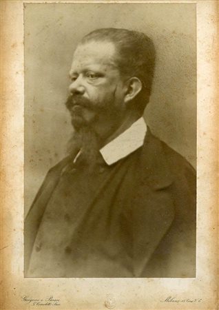 Vittorio Emanuele II (1820-1878), stampa postuma alla gelatina-bromuro realizzata da Guigoni e Bossi, fotografi reali in Milano, 1900 circa. Stampa applicata a cartonato con intestazione degli autori.