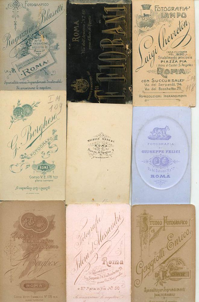 Ritratti di studi fotografici romani, 1860-1900 circa. Lotto di venti CDV e formati minori. Varie tecniche.
