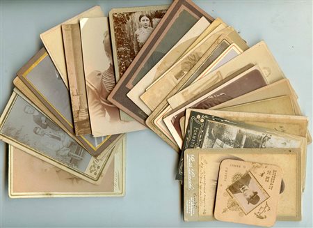 lotto di venticinque CDV, 1860-1910. Varie tecniche e condizioni. Ventitrè ritratti di studi fotografici italiani e due esteri.
