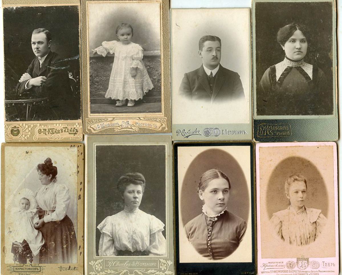 Lotto di otto CDV est europei realizzati prima della rovoluzione russa, 1880-1900 circa. Varie tecniche e condizioni