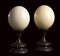 Coppia di uova di struzzo su base. Inizi XX secolo. 28 cm.