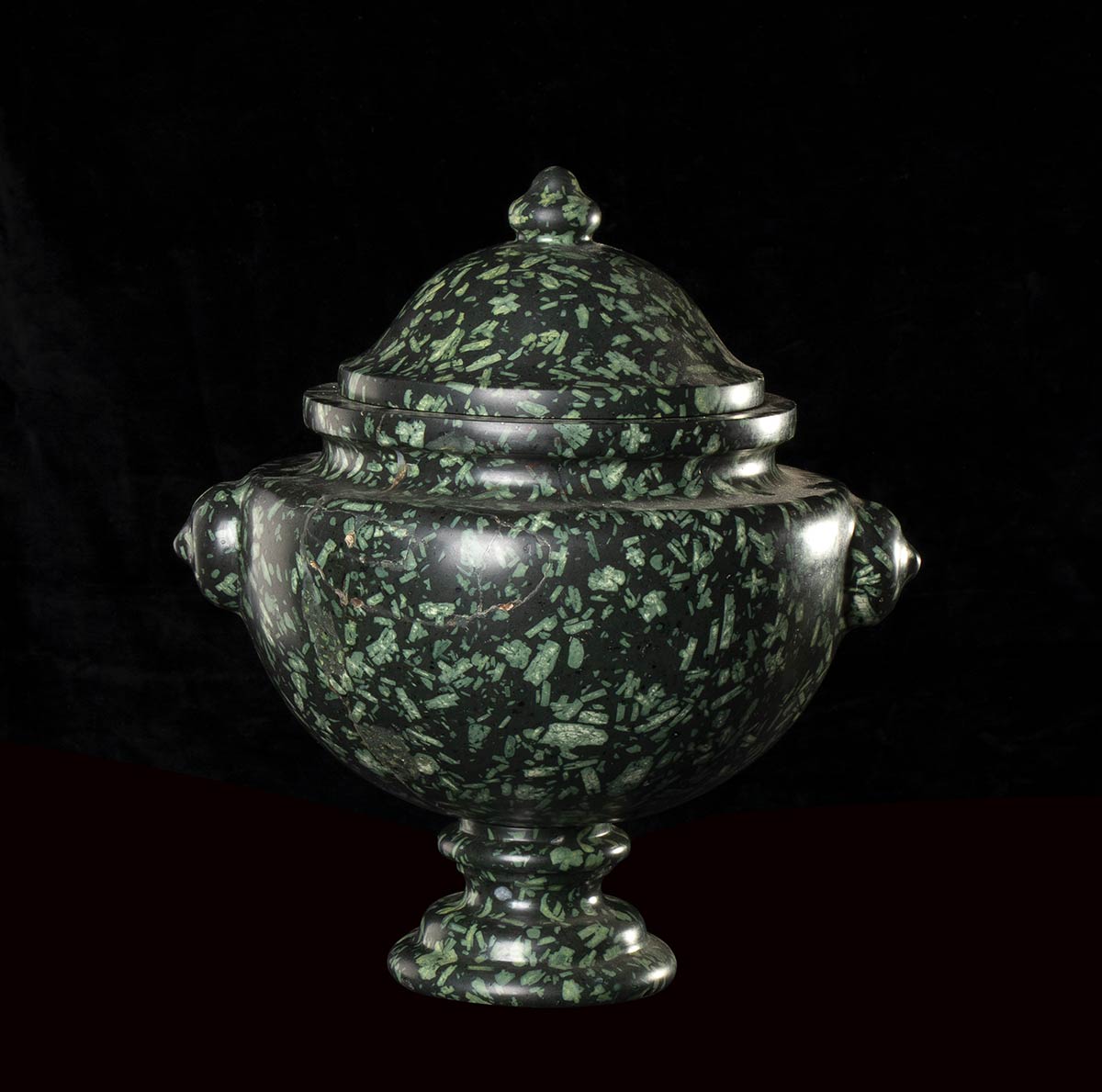 Vaso decorativo pregiato in marmo serpentino (lapis croceus). 30 cm