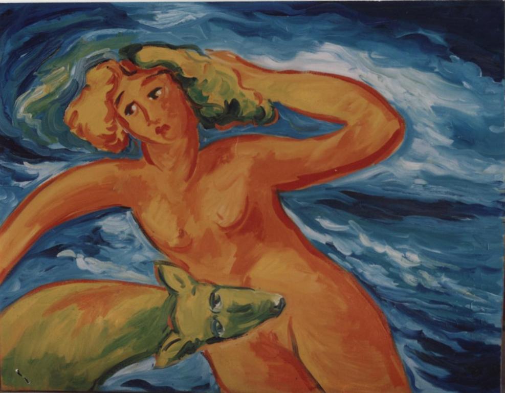 GERMANA' MIMMO - CATANIA 1944 BUSTO ARSIZIO 1992 ST, 1991 - ACRILICO SU TELA, cm 70 x 90. Firma e anno al retro. Autentica a cura dell' Archivio Generale dell' Opera Pittorica di Mimmo Germanà, della Galleria d'Arte l' Acquario