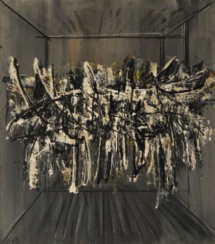 Lot 20 | ALDO BERGOLLI 1916 - 1972 Paesaggio nella stanza , 1959 Olio su tela, cm. 80...
