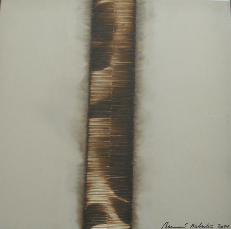 AUBERTIN BERNARD - FRANCIA 1934 - DESSIN DE FEU, 2011 - FIAMMIFERI BRUCIATI SU ALLUMINIO cm 50 x 50. Firma e anno in basso a destra. Autentica del Maestro su fotografia