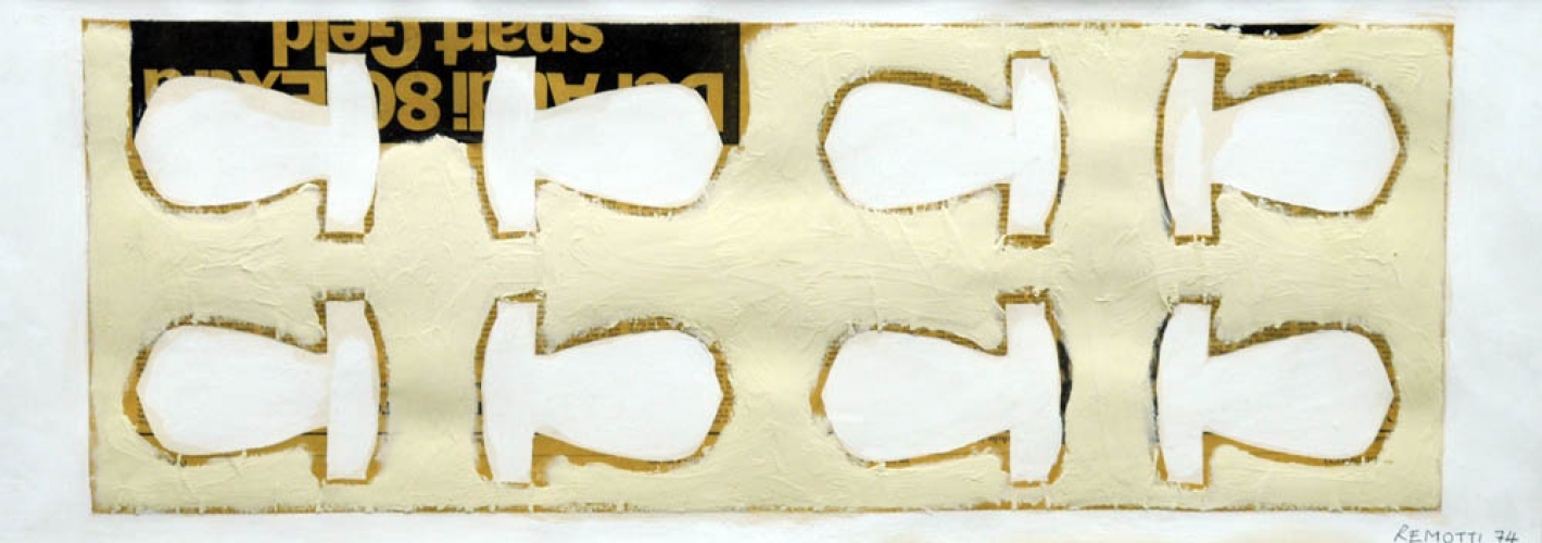 REMO REMOTTI 1924 Senza titolo, 1974 Olio e collage su carta, cm. 35 x 99...