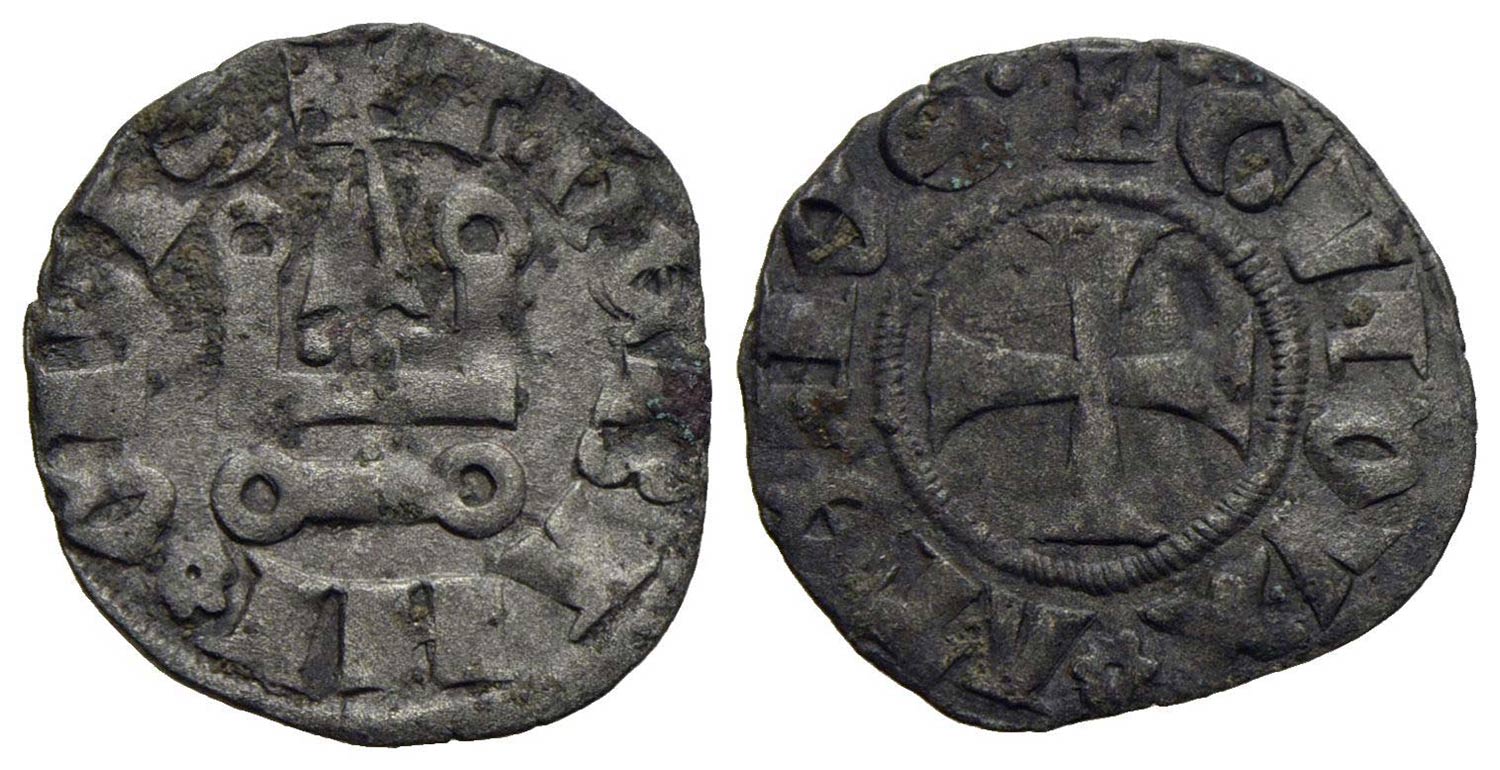 ATENE - Guido II de la Roche (1287-1308) - Denaro tornese - (Thebe) - Castello - R/ Croce patente - (MI g. 0,84) R Metcalf 1056
