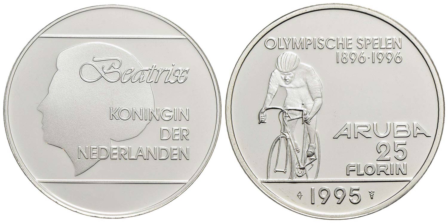 ARUBA - Beatrice (1980-2013) - 25 Fiorini - 1995 - Olimpiadi 1996 - AG Kr. 13 Proof in capsula