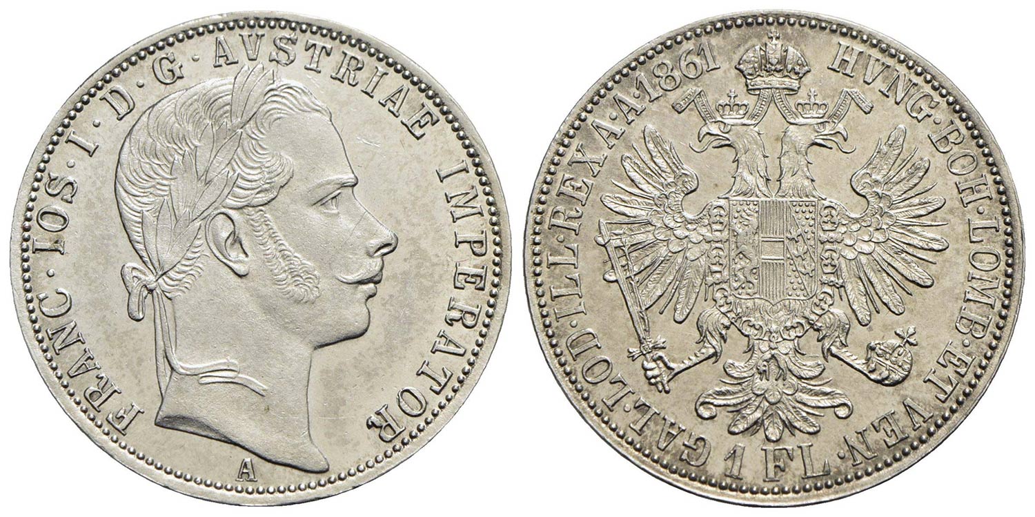 AUSTRIA - Francesco Giuseppe (1848-1916) - Fiorino - 1861 A - AG Kr. 2244 Fondi lucenti<br>FDC