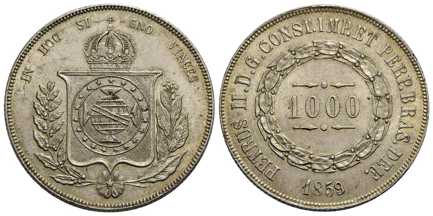 BRASILE - Pedro II (1831-1889) - 1.000 Reis - 1859 - AG Kr. 465<br>FDC