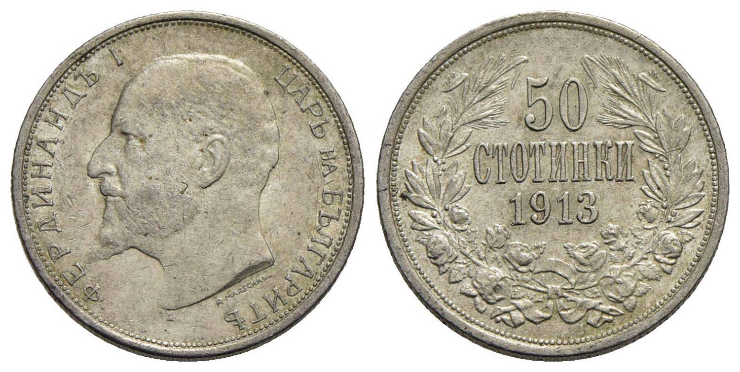 BULGARIA - Ferdinando I (1887-1918) - 50 Stotinki - 1913 - AG Kr. 30