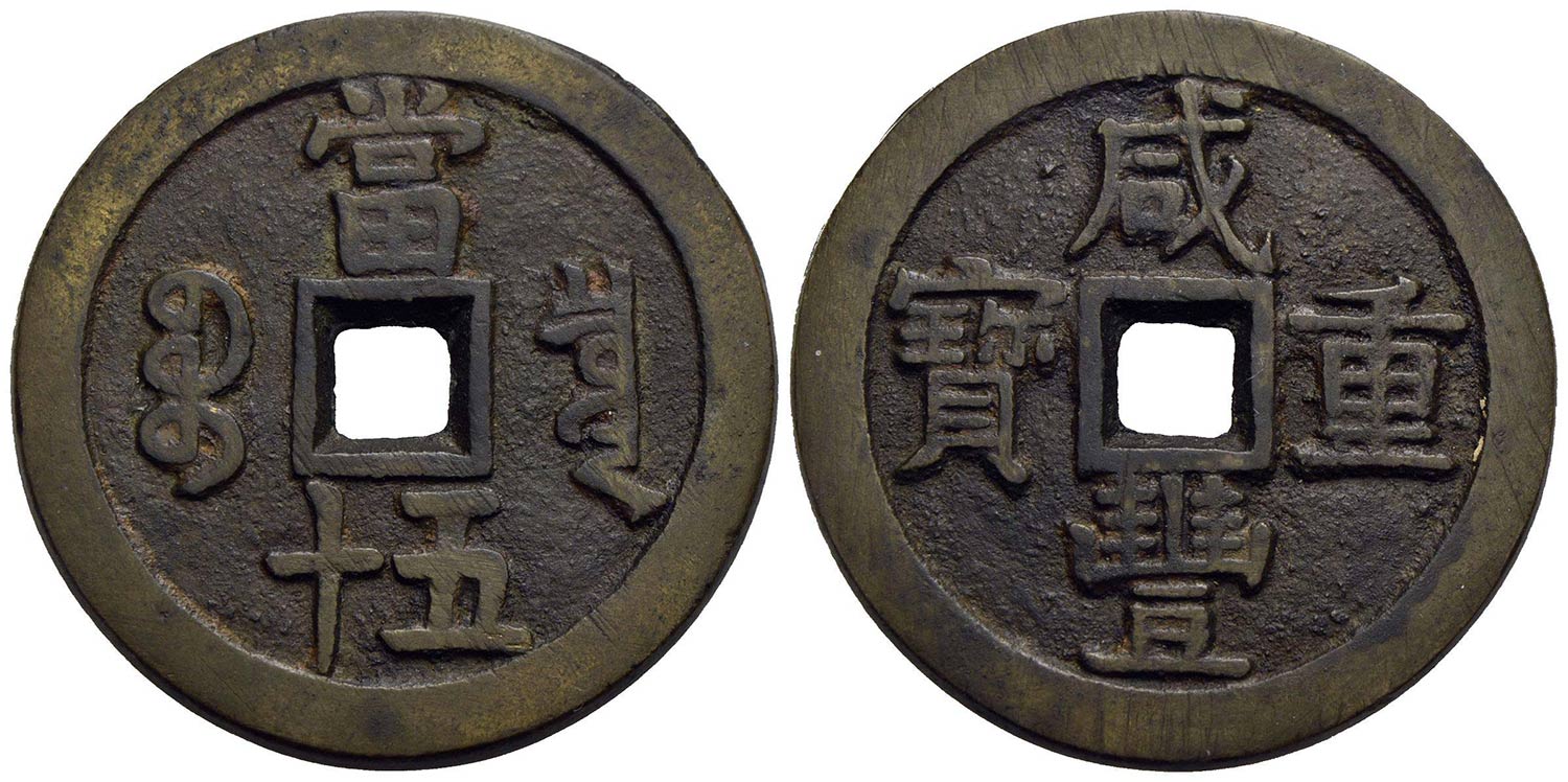 CINA - Hsien Feng (1851-1861) - 50 Cash Ø: 56 mm. - (BR g. 69) Con cartellino manoscritto del collezionista anni '50-'60