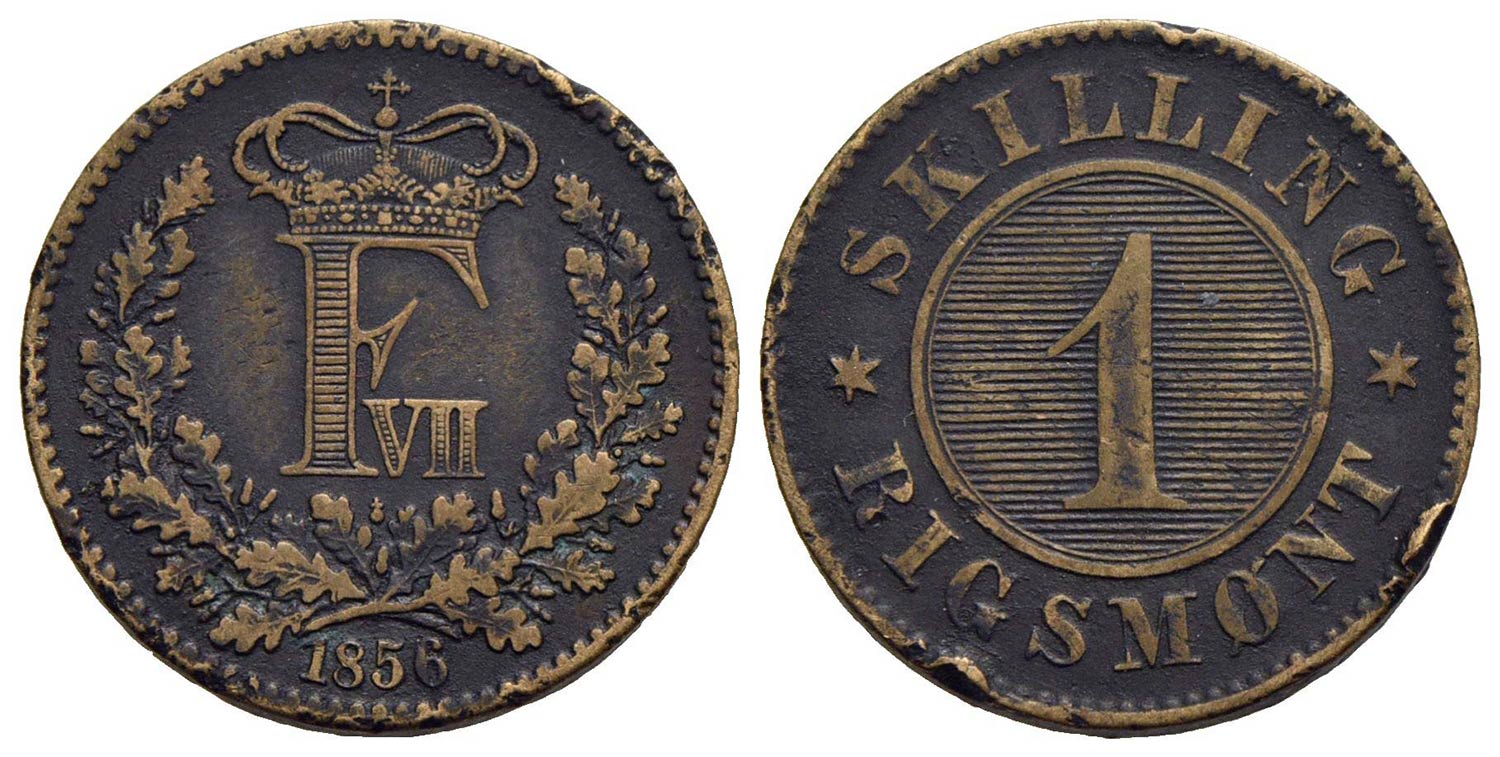 DANIMARCA - Federico VII (1848-1863) - Skilling - 1856 - CU Kr. 763<br>bel BB