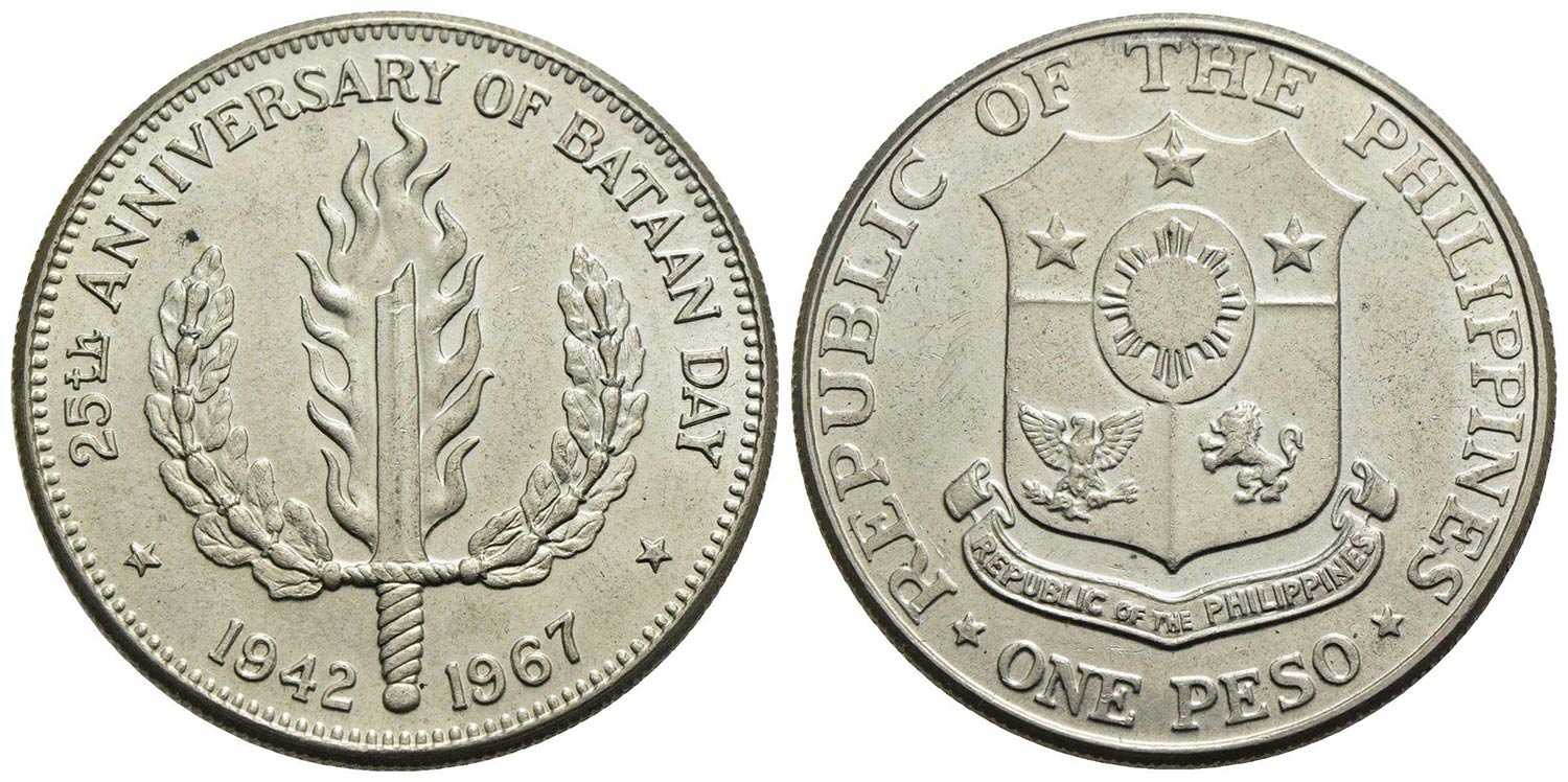 FILIPPINE - Repubblica - Peso - 1967 - 25° anniversario Bataan Day - AG Kr. 195