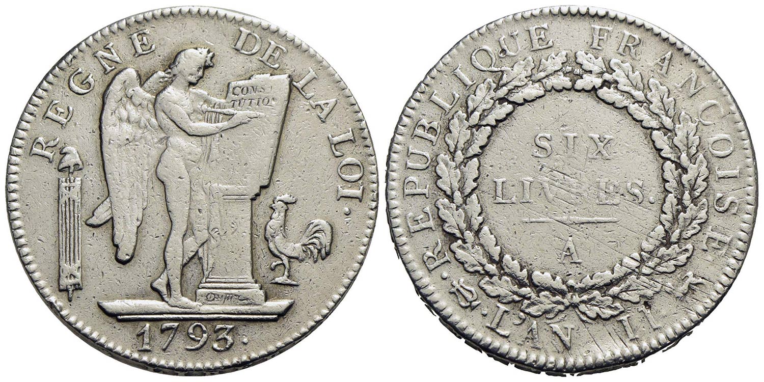 FRANCIA - Prima Repubblica (1793-1794) - 6 Lire - 1793 - AG R Kr. 624.1 Tracce di pulizia<br>qBB