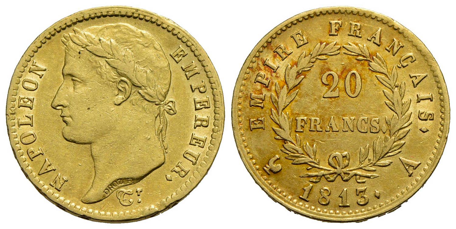 FRANCIA - Napoleone I, Imperatore (1804-1814) - 20 Franchi - 1813 A - Testa laureata - AU Kr. 695.1