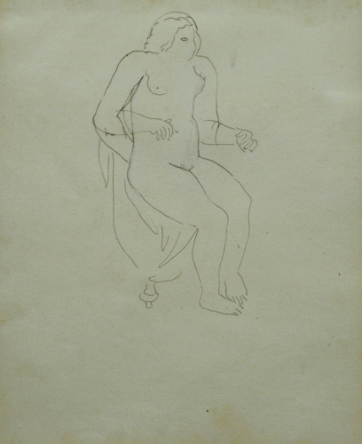 MARINO MARINI 1901 - 1980 Nudo seduto Inchiostro su carta, cm. 26 x 21,4 Autentica Fondazione Marino Marini su fotografia Etichetta Bologna Arte Fiera sul retro Prov. Collezione Privata