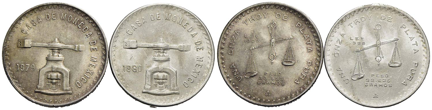 MESSICO - Repubblica (1823) - Oncia - 1979 - AG Kr. M49a assieme a 1980 - Lotto di due monete<br>qFD