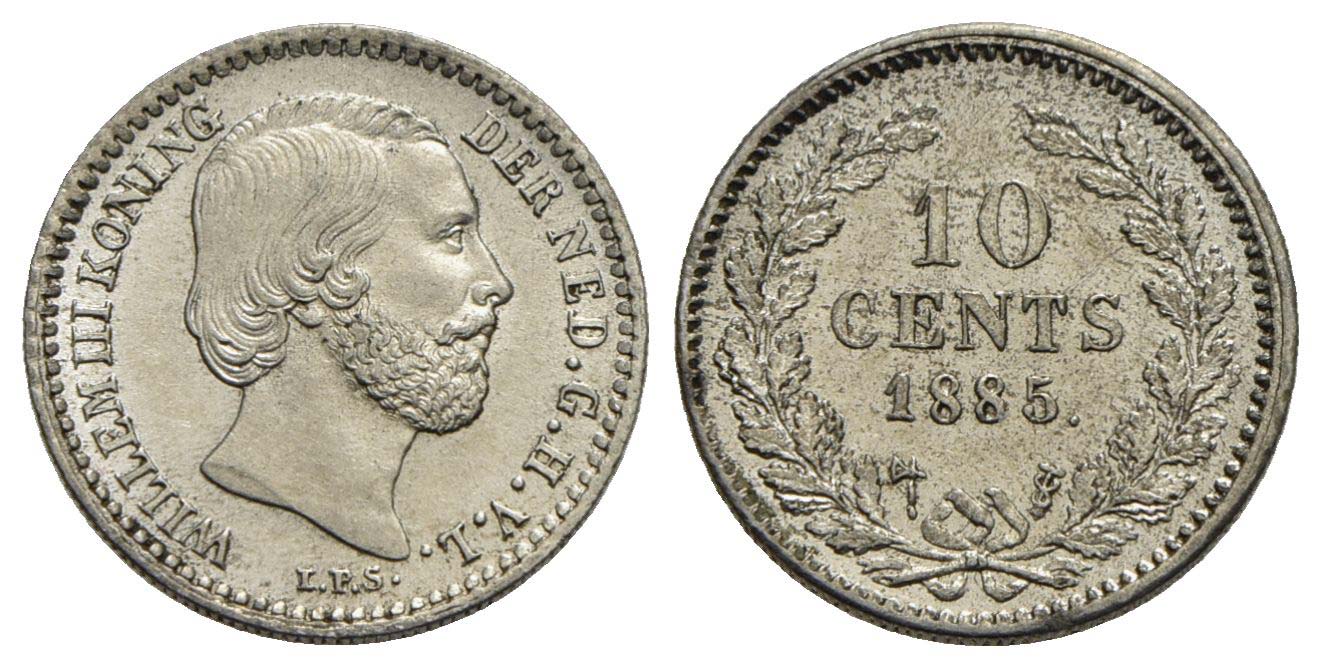 OLANDA - Guglielmo III (1849-1890) - 10 Centesimi - 1885 - AG Kr. 80<br>FDC