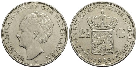 OLANDA - Guglielmina (1890-1948) - 2,5 Gulden - 1929 - AG NC Kr. 165