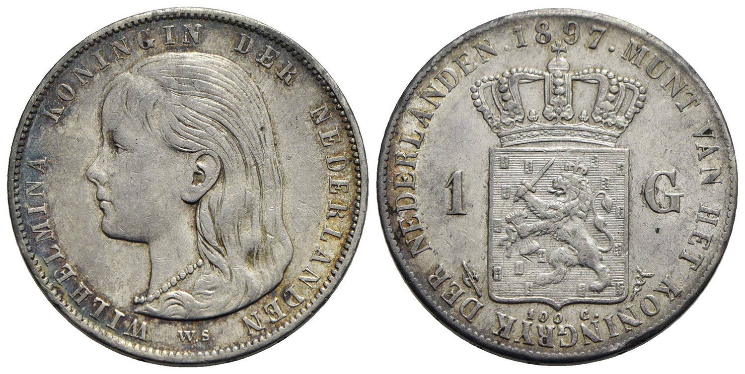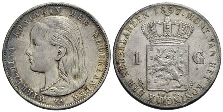 OLANDA - Guglielmina (1890-1948) - Gulden - 1897 - AG Kr. 117 Segnetto al D/<br>SPL/SPL+