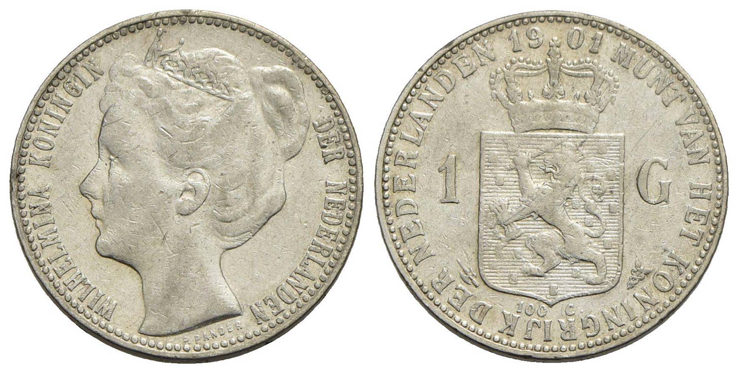 OLANDA - Guglielmina (1890-1948) - Gulden - 1901 - AG R Kr. 122.1<br>MB-BB