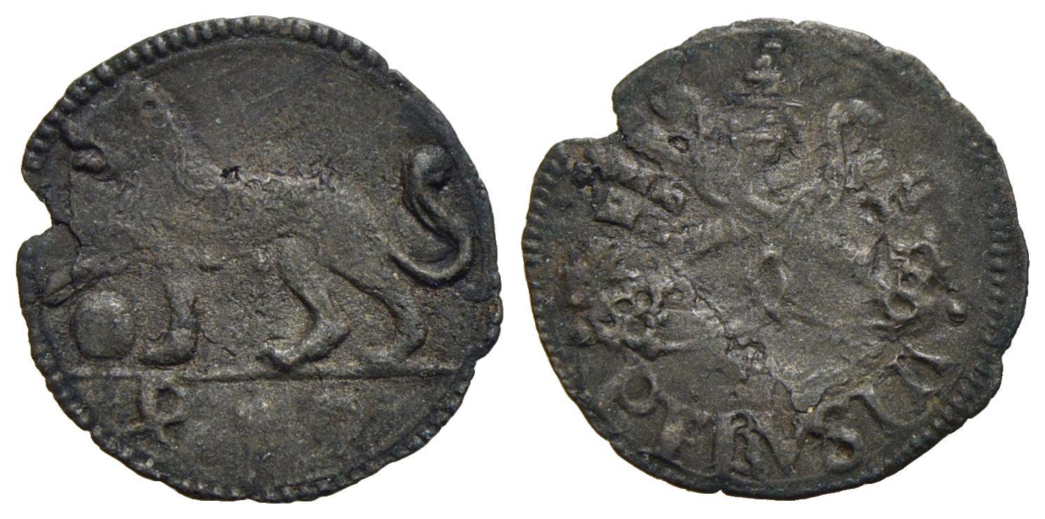 PERUGIA - Leone X (1513-1521) - Quattrino - Leone a s. - R/ Chiavi decussate sormontate da tiara - (MI g. 0,48) RR CNI 50; Munt. 152 In basso PERUSIA.