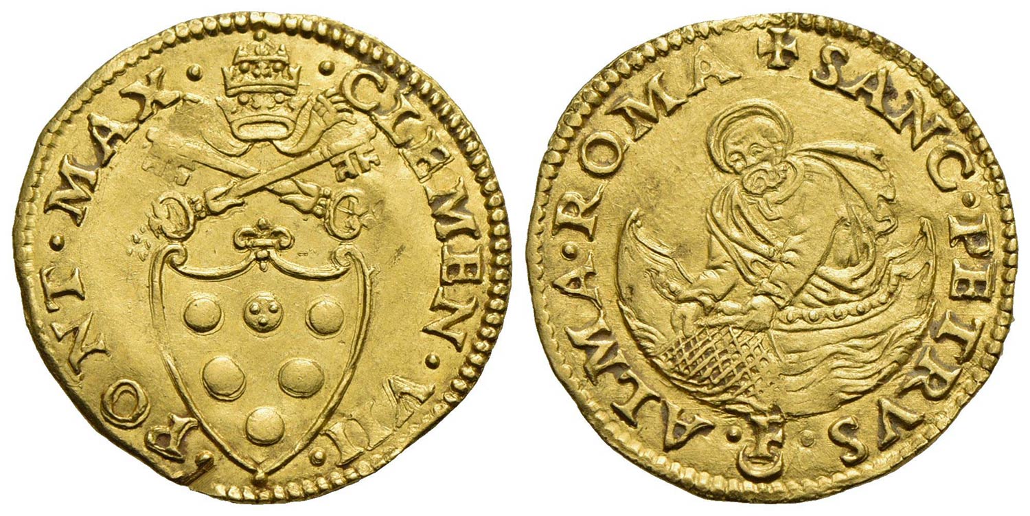 ROMA - Clemente VII (1523-1534) - Fiorino di camera - Stemma semiovale gigliato - R/ San Pietro alla pesca - (AU g. 3,35) RR CNI 54; Munt. 16 var. I (punteggiatura variata) Ex Asta Montenapoleone del 26/02/1982