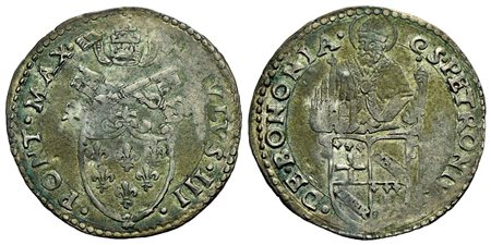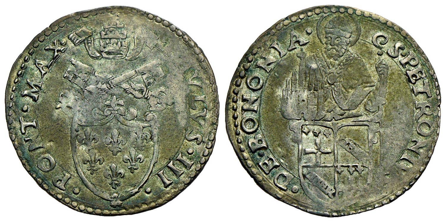 BOLOGNA - Paolo III (1534-1549) - Mezzo paolo - Stemma semiovale gigliato - R/ Busto di San Petronio
