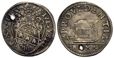 ROMA - Giulio III (1550-1555) - Grosso - A. II - Stemma ovale in cornice - R/ Ara - (AG g. 1,62) RR CNI 60; Munt. 33 Forata