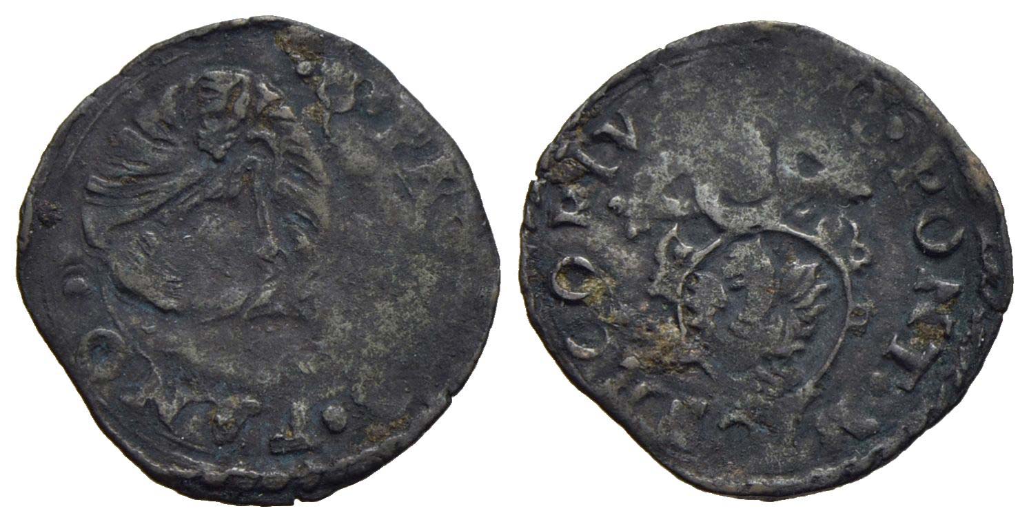 FANO - Gregorio XIII (1572-1585) - Quattrino - Stemma a cuore - R/ Mezza figura di San Pietro - (MI g. 0,56) R Ser. 765; Munt. 405
