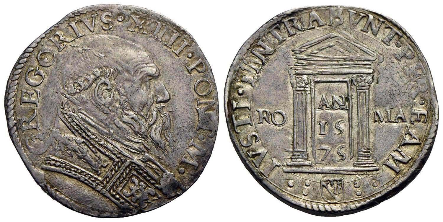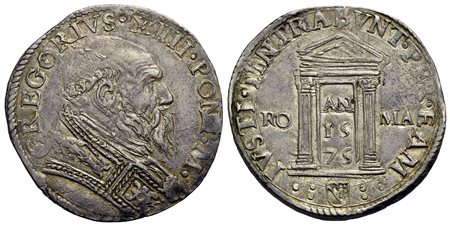 ROMA - Gregorio XIII (1572-1585) - Testone - 1575 - Busto a d. - R/ Porta Santa - (AG g. 9,58) R CNI 24; Munt. 33 var. I