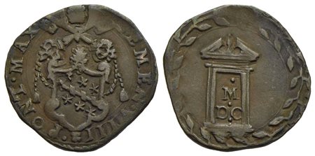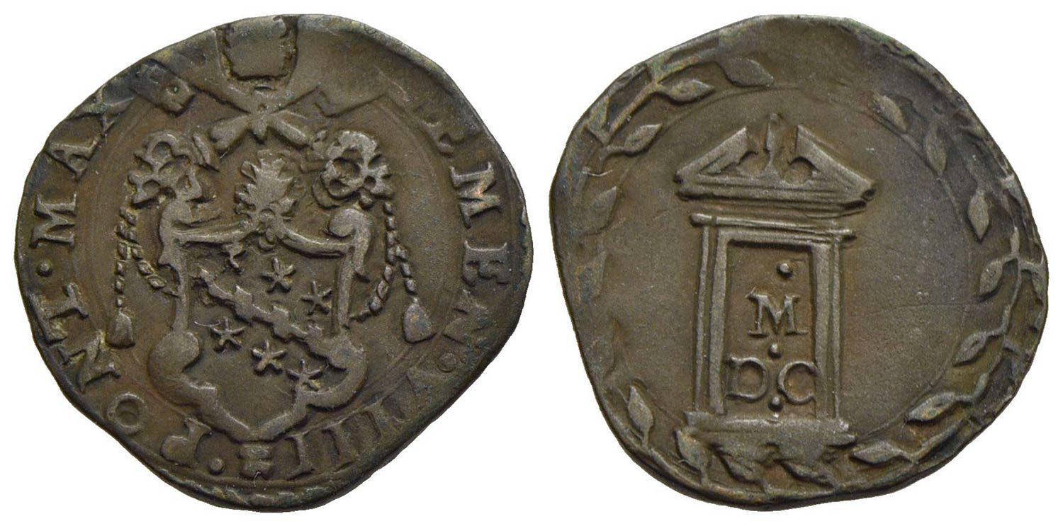 ROMA - Clemente VIII (1592-1605) - Quattrino - 1600 - Stemma a targa sagomata - R/ Porta Santa aperta - (CU g. 2,5) RR CNI 90; Munt. 75 var. Al D/ CLEMEN anziché CLEM